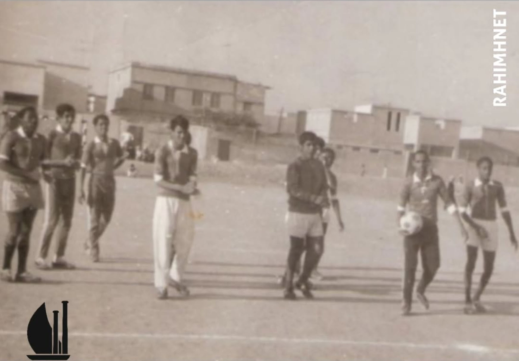 كانت تلك الحقبة تمثل البدايات الفعلية لتنظيم النشاط الرياضي المدرسي في رحيمة، حيث بدأت المدارس تُقيم المنافسات بين الفرق الطلابية وتشجع على ممارسة الرياضة كجزء من العملية التعليمية. ويُلاحظ في خلفية الصورة المباني السكنية الأولى في حيّ رحيمة، مما يعكس الطابع العمراني البسيط آنذاك والروح الاجتماعية التي كانت تجمع الأهالي والطلاب في الفعاليات المدرسية.